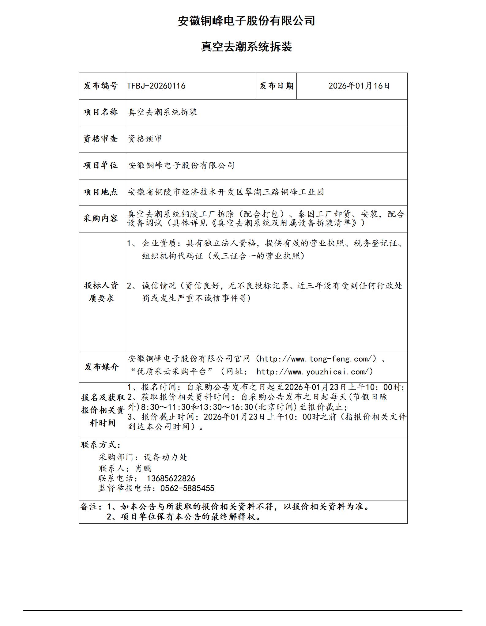 安徽銅峰電子股份有限公司 (銅峰公司2026年零星建筑維修工程 招標(biāo)公告)_01
